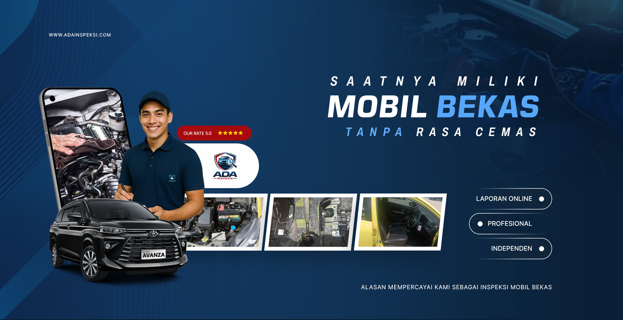 ADA Inspeksi hadir dengan tim profesional, inspeksi detail, laporan transparan, dan pengecekan objektif untuk membantu Anda membeli mobil dengan aman di Yogyakarta.